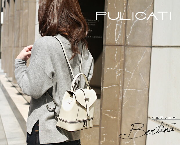 リュック 本革レザー 3WAY ショルダーバッグ ハンドバッグ レディース 斜め掛け イタリア製 PULICATI ベルティーナ<全5色> ボトムのジップデザインが印象的!イタリア【PULICATI(プリカッティ)】の、ショルダーになるミニレザーリュック♪